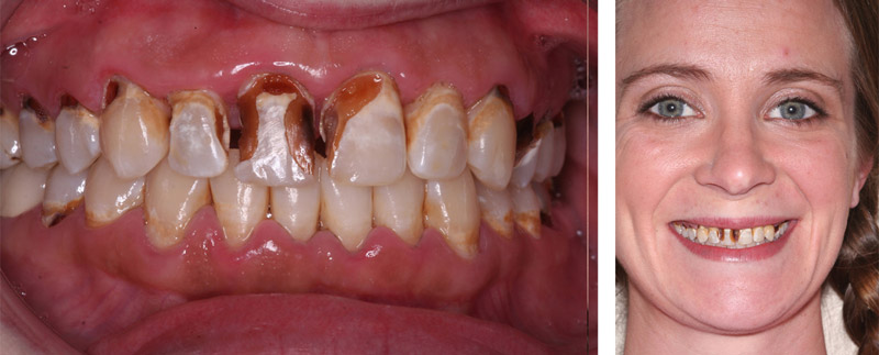 Courtney had a wedding to go to…HER OWN! Naturally, she wanted to be able to smile in her own wedding pictures, but the damage from her childhood created by sugary drinks and poor brushing routines created these dark regions of remineralization. That’s right, later in life, Courtney learned to take better care of her dental health, and the dark regions that you see are actually the enamel healing itself! Courtney still thought her teeth were unsightly and decided to do something about them before her wedding. She got a one-day-makeover at Twin Aspen Dental Center with dental veneers that are beautiful, tough, and permanent! Just look at the difference: